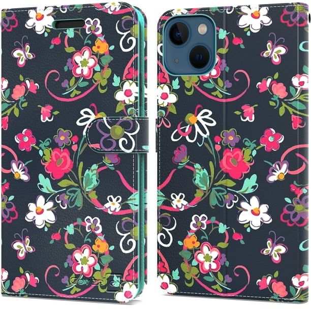 Coveron For Apple Iphone 14 Plus Wallet Case Rfid Blocking Vegan Leather 6x Card Slot Holder Cover Flip Folio Phone Pouch Navy Flower Walmart Com